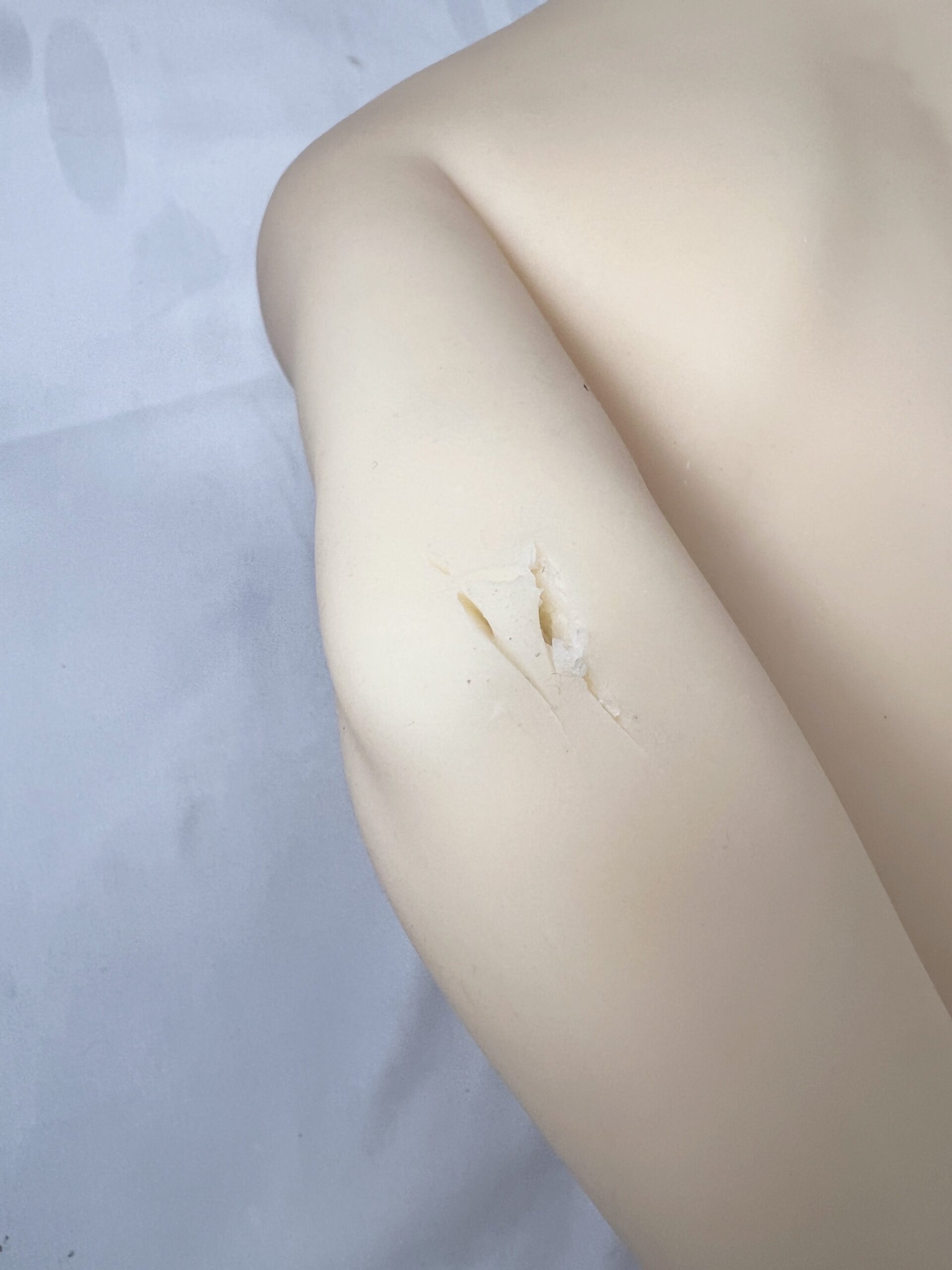 ・左ひじに割れがあります。