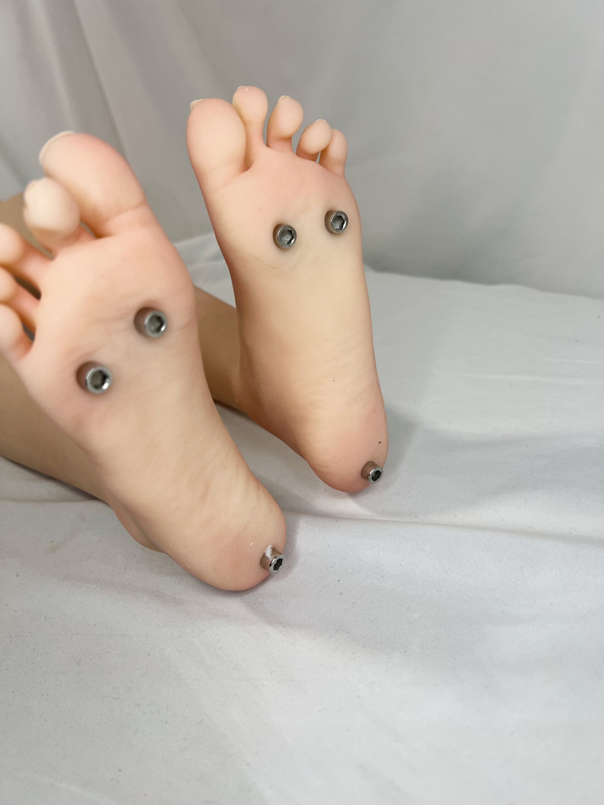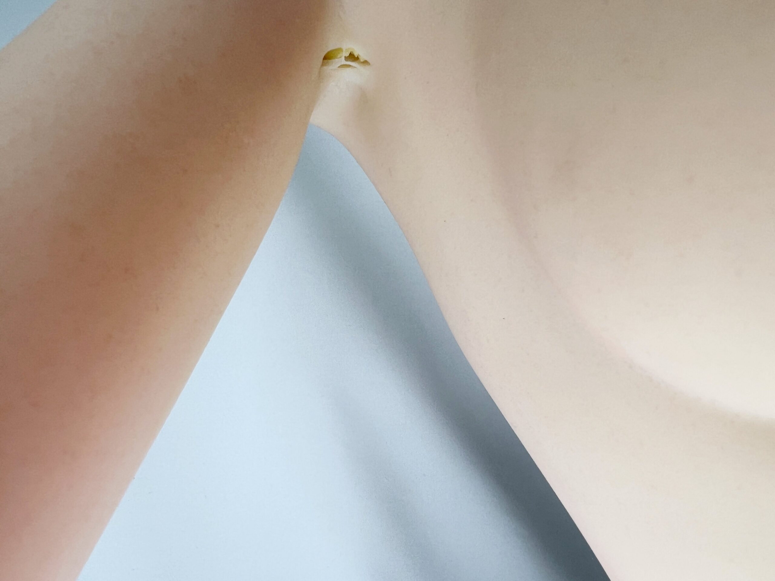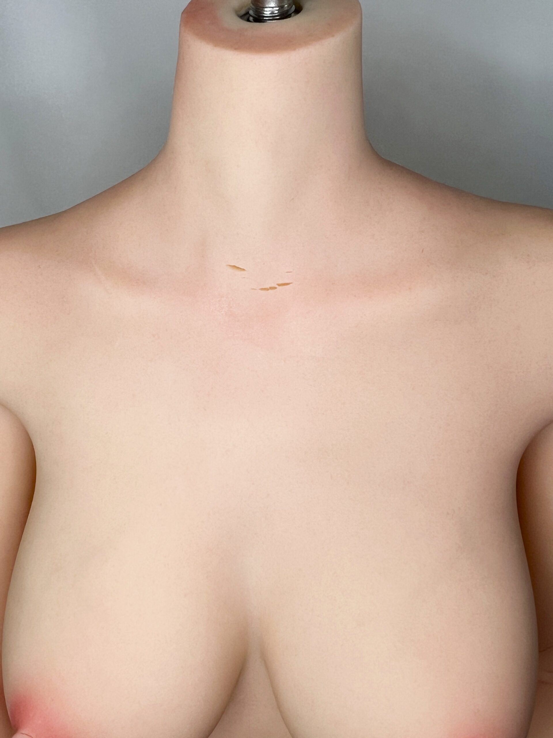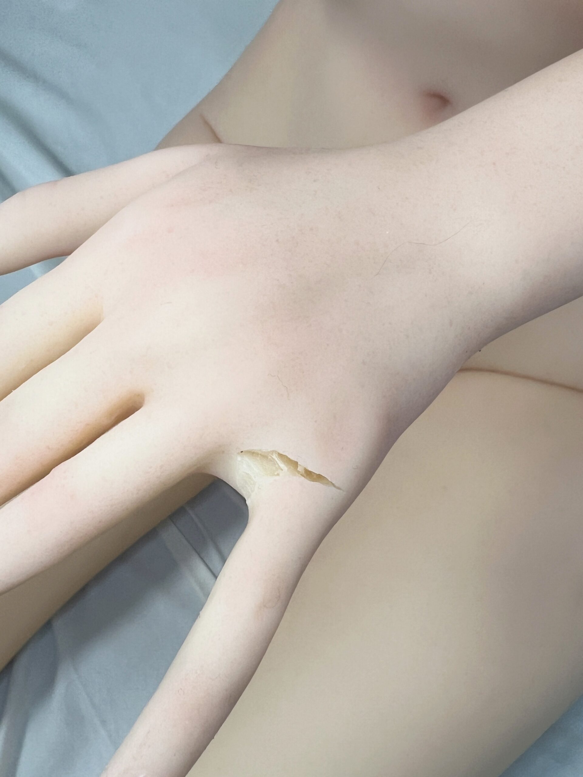・首元、両乳首、右手親指付け根、右かかと、右脇、左手小指付け根に割れがあります。