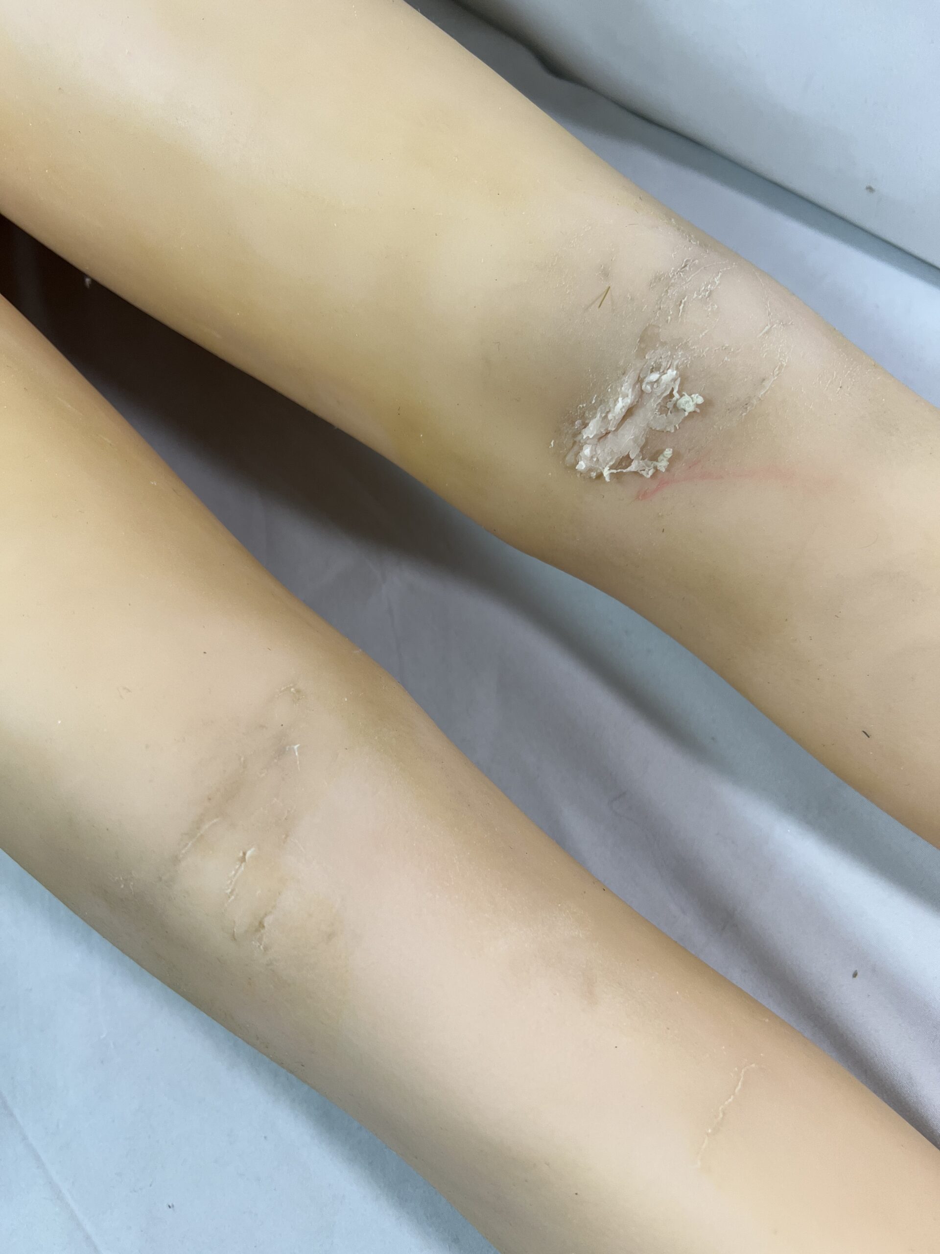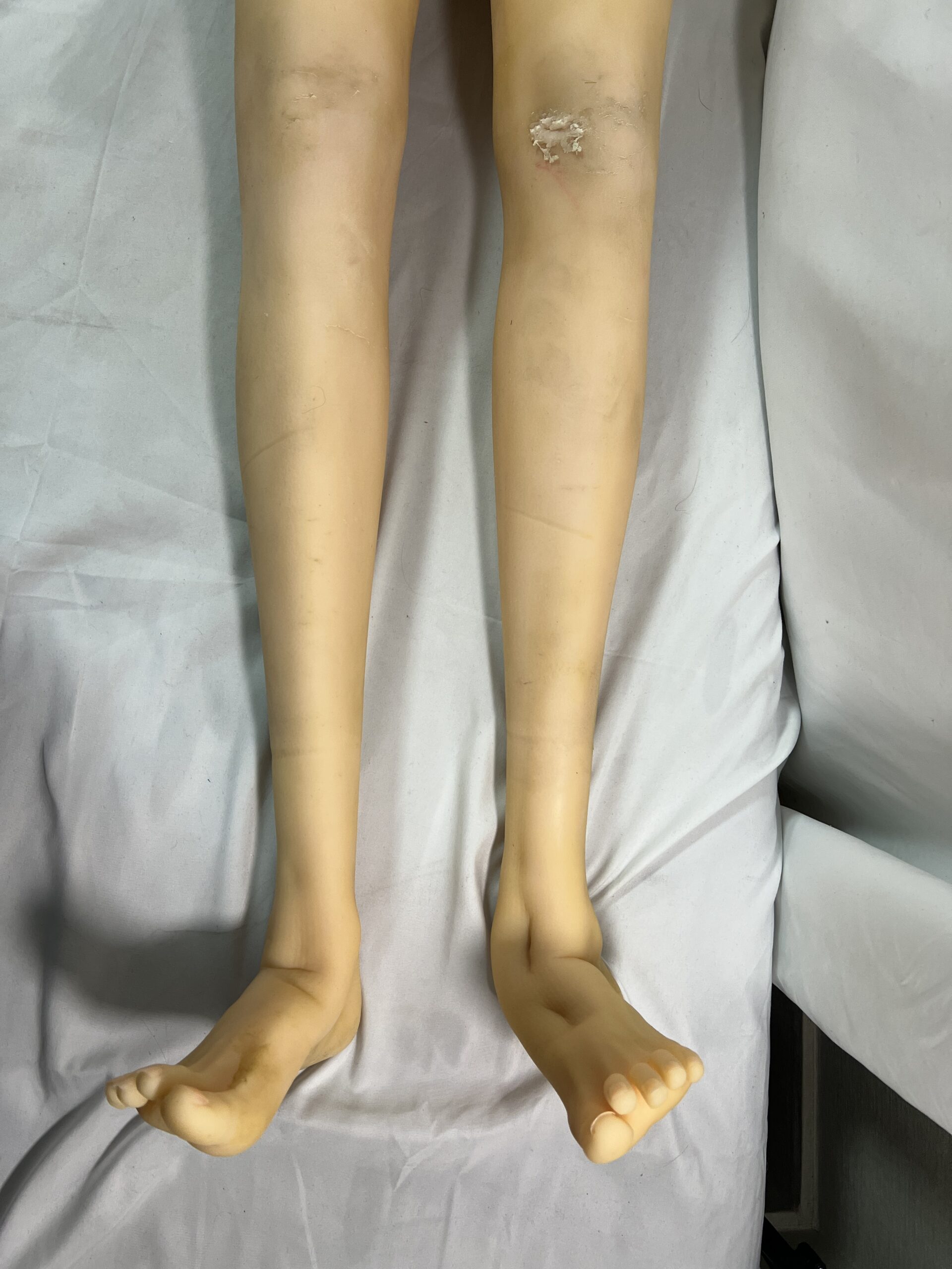 ・両ひざ傷 ・全体的に汚れ ・両足首、両脛、お尻型付 ・ホール周り変色 ・左ひざ補修跡 ・足グリップ弱め