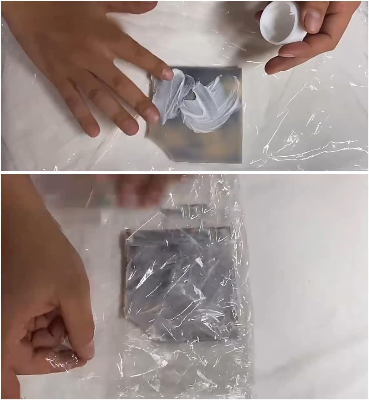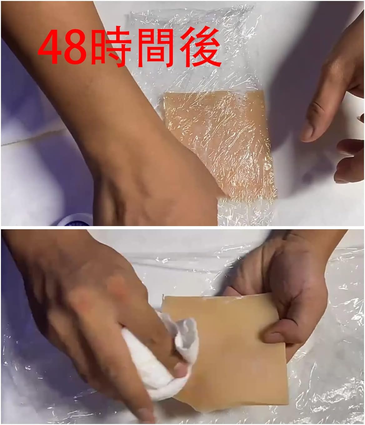 ②綿棒で脱色剤を適量に取り、染色された部分に直接塗布して、12時間を待ちます。(塗布した後に、ラッピングをすれば脱色剤がより効果的に奥まで浸透します。)